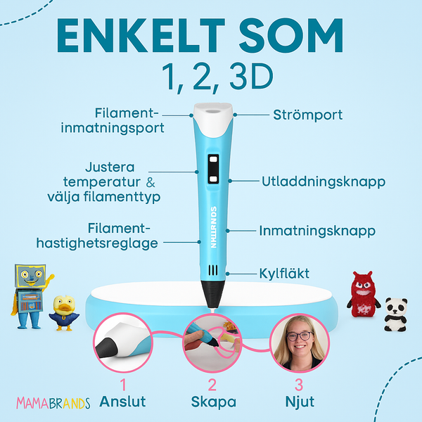 🎨 Överraska ditt barn med den roligaste och mest kreativa gåvan – vår 3D-penna, som låter dem tillbringa timmar med att skapa unika konstverk.